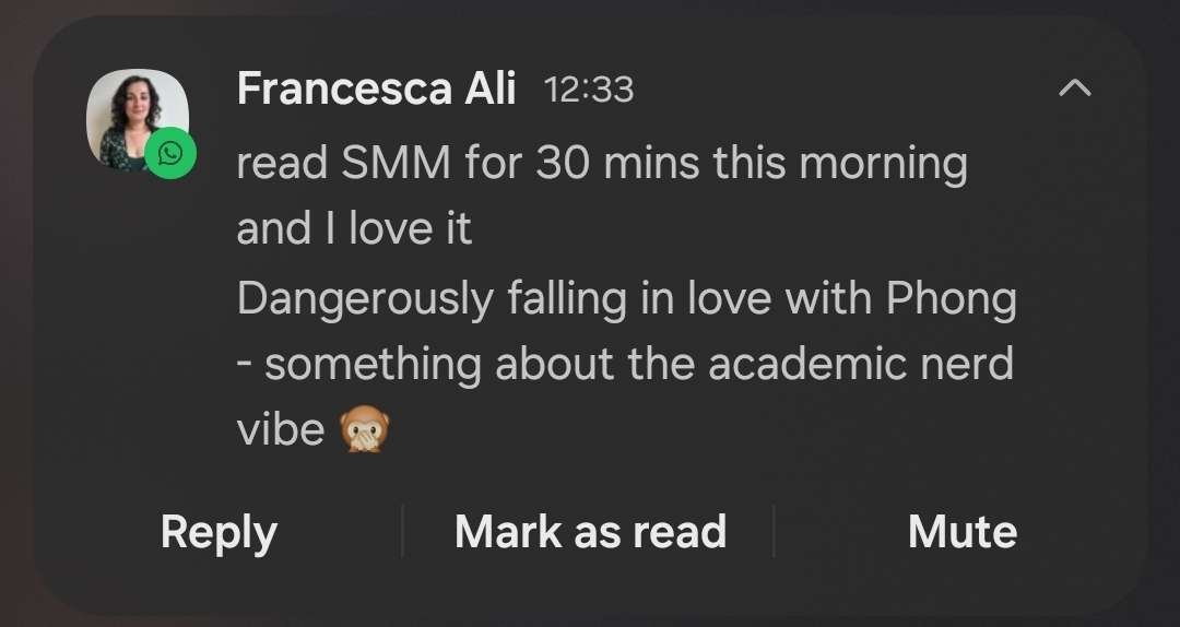 I went after this mindset with a machete. I vowed to write something that is so unsellable, as long as it’s complete and it’s mine. Elle and I had a long call where I just yapped her ear off about the book and she helped me unlock what I didn’t manage to see but was already there. And to stop myself from obsessing over every single sentence, I started doing sprints every day for one hour. Just one. No reading back, no editing while I draft, just write.