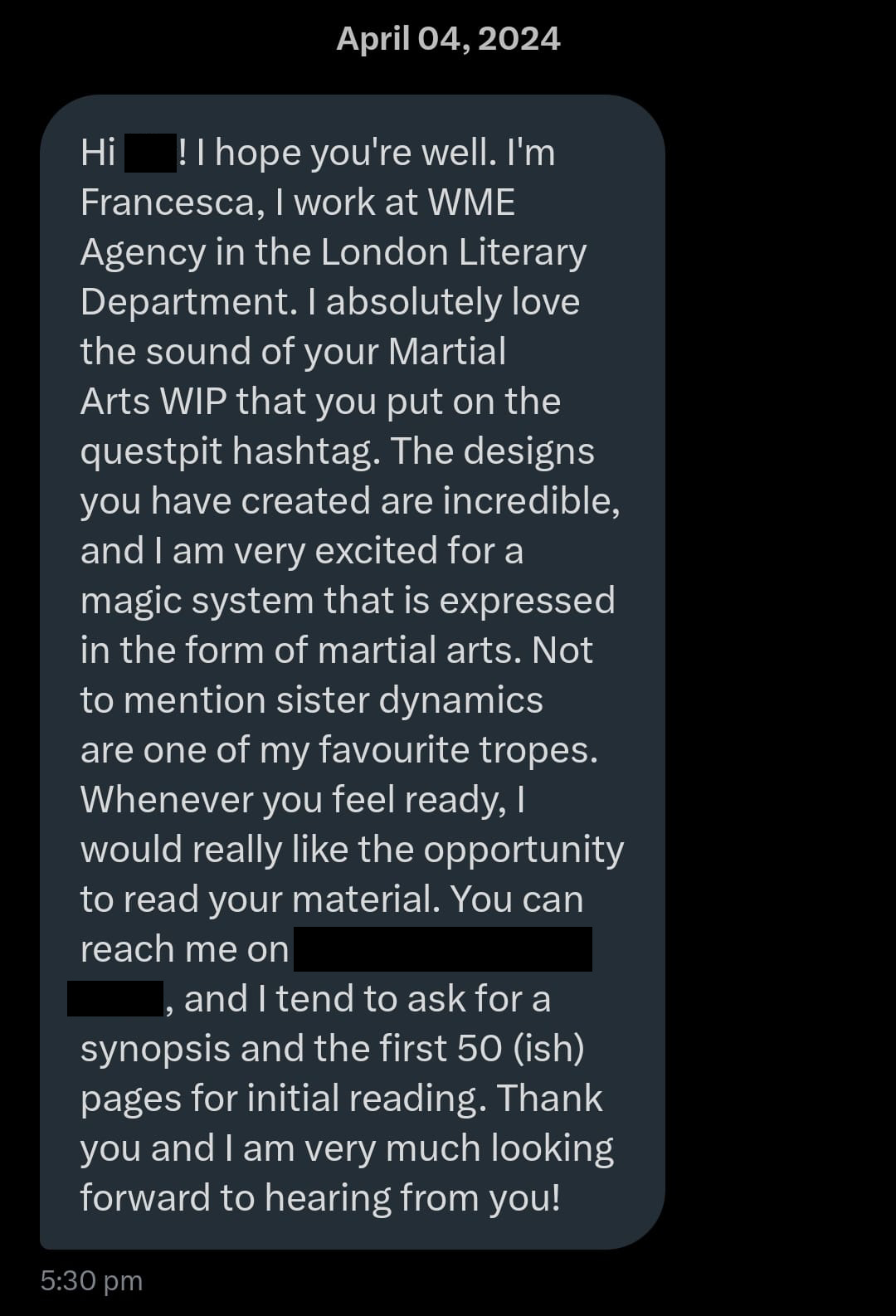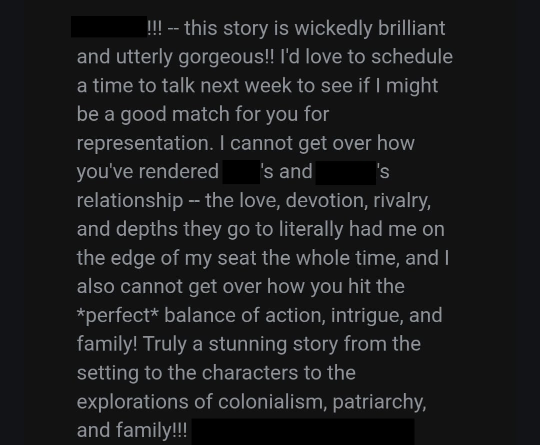 A few notes before I start: There will be a few screenshots of DMs and emails that I will block out (a) the name I used for my query, and (b) my book title and characters. No agent will be named except for mine <3
