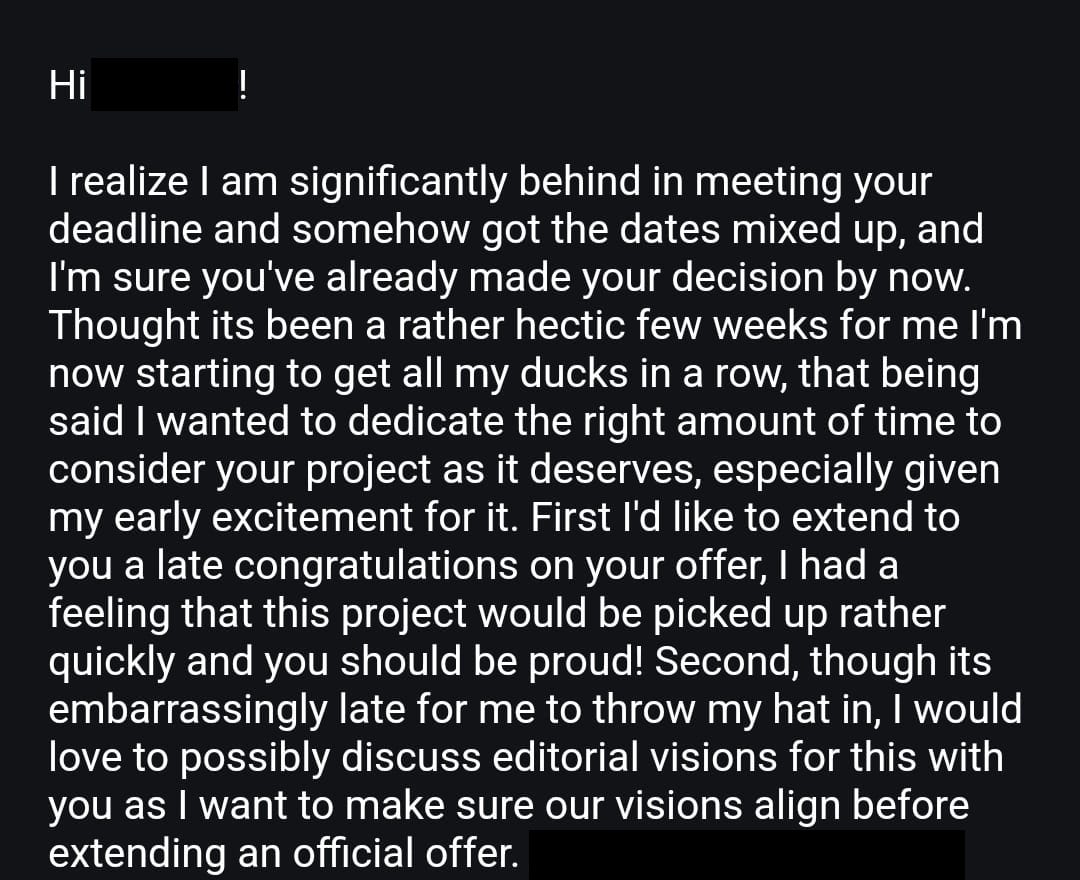 The thing with publishing is that you don’t survive certain stages, you just get more armor for the next one. I say I got multiple offers now, but back then I was stressed. I was stressed because suddenly there were so many people believing in me and idk, I never got this far. All your feelings are valid whether you got one or you got multiple. When you put your words, and what is pretty much an extension of yourself, out there, most of the time, what you get back is self-doubt. I know I finally had my time, but I didn’t forget that first close-call. It’s one of the things that stays with you forever.